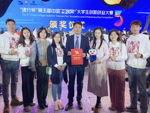 10月13日-15日,第五届中国“互联网+”大学生创新创业大赛全国总决赛在浙江大学举行。由副校长陈雄章带队,创新创业学院负责人,教务处、学工处、部分学院教师代表以及项目参赛团队共30人奔赴杭州参赛。经过激烈角逐,学校勇夺1银2铜的历史最好成绩,实现“互联网+”国赛银奖的突破,其中“不惑青春”项目以87.33高分荣获银奖,是广西所有参赛项目中最接近金奖的项目,另两项铜奖项目为“瑶草纲目”和“壮美微艺”。
