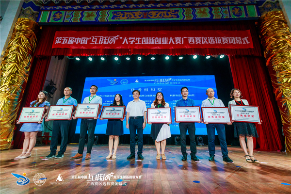 为了更好的备战校赛、挺进区赛,学校邀请到多位业内专家到校宣讲,校长赖每、党委书记刘彪、党委副书记覃存民、副校长陈雄章等校领导多次深入二级学院指导参赛工作。学校还多次举办大赛训练营、特训营等活动。参赛项目经过多次培训、指导,在商业计划书的撰写、PPT的制作、路演稿的讲解等方面均得到了提升,强化了参赛能力。历经了网评、会评、校赛、复活赛等阶段,学校共有14个项目进入了广西区总决赛,其中11个项目获争金保银、3个项目获得争银保铜的好成绩。最终荣获8个金奖、5个银奖、1个赛道冠军。同时,学校凭着组织有力、参赛项目多、项目质量高、比赛成绩优异,与广西大学、广西师范大学共同荣获高教赛道和红旅赛道双“优秀组织奖”。