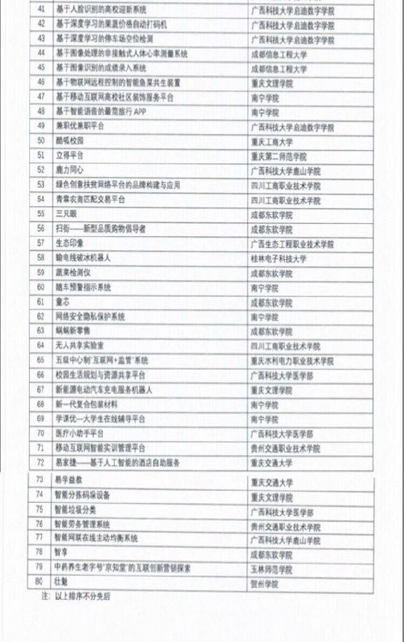 第五届全国移动互联创新大赛西南赛区(高校组)决赛入围项目名单(2)