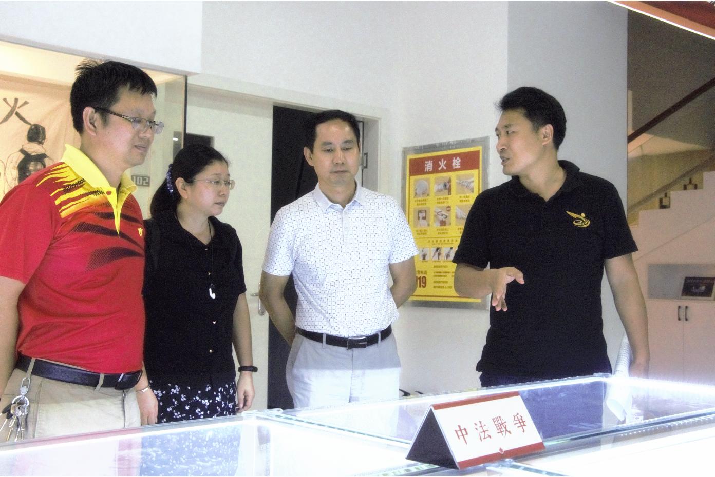 首先,马骏院长对三位领导表示欢迎,并带领一行人参观了基地展厅。他就展厅内所展示的物品由来、历史背景以及展厅建成以来开展活动的情况作了简单介绍。