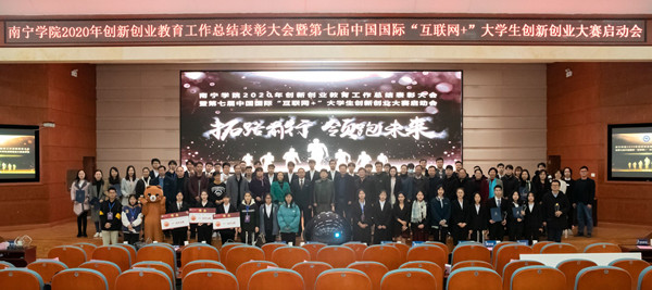 随后,学校领导及各单位、部门负责人为在2020年中获得学科竞赛一类赛事国家级奖项的师生及第六届中国国际“互联网+”大学生创新创业大赛的获奖团队颁奖。我校在2020年共获得学科竞赛一类赛事国赛奖项18项;获得第六届中国国际“互联网+”大赛全国银奖1项、全国铜奖1项,自治区级金奖3项、银奖8项、铜奖30项,这是全体南院人共同努力的成果。