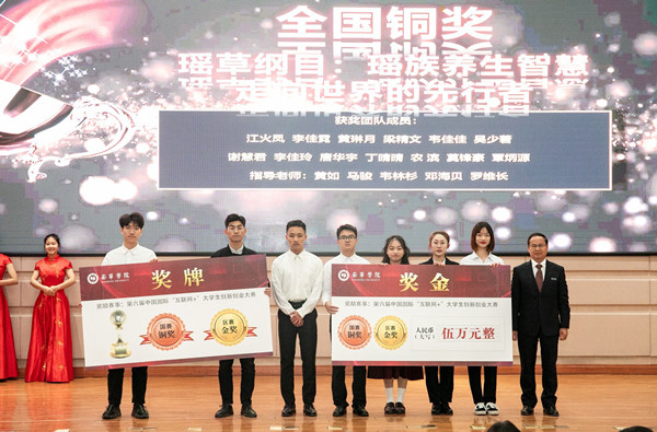 刘彪书记为获得第六届中国国际“互联网+”大学生创新创业大赛全国银奖的项目颁奖