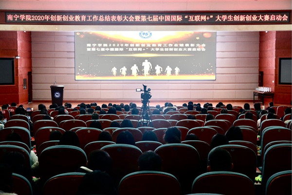 春种一粒粟,秋收万颗子。2021年1月6日,Beat365中文官方网站2020年创新创业教育工作表彰大会暨第七届中国国际“互联网+”大学生创新创业大赛启动会在图书馆报告厅顺利举行。学校刘彪书记、陈雄章副校长、李陶深副校长、各单位、部门负责人、各二级学院分管实践教学副院长及创新创业工作联络人,金园丁创新创业导师和获奖师生代表们共500余人参加了会议。本次会议由学校覃存民副书记主持。