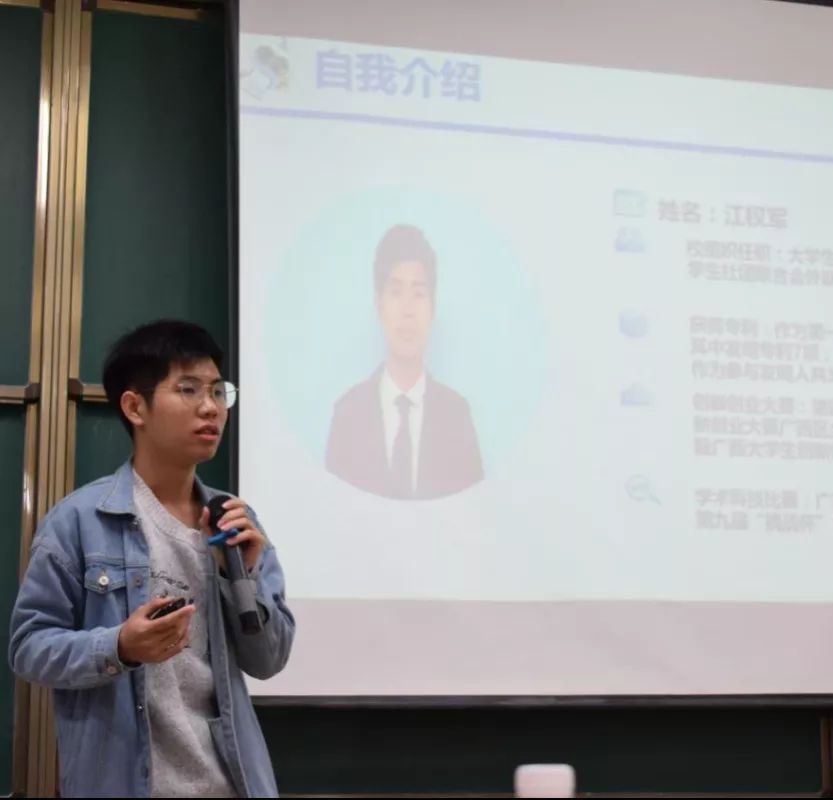 活动于2019年11月27日19:30在高博楼311教室开展。在分享会上,江权军学长结合自己创新创业比赛和申请发明专利经验以学生的身份角度,用学生的语言现身说法,向大家分享了在创新创业道路上的所学、所获、所想,并对知识产权中的专利权做了详细的解释。