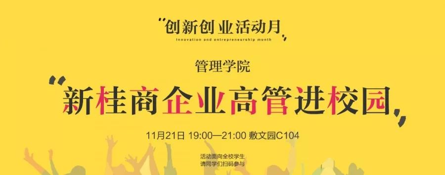 创新创业活动月启动以来,各个二级学院结合专业特点,融合课程内容改革,积极开展各式各样的创新活动。此次活动月的开展深受学生喜爱,其中,“新桂商企业高管进校园”活动因报名人数众多,成为了同学们中最受欢迎的活动。