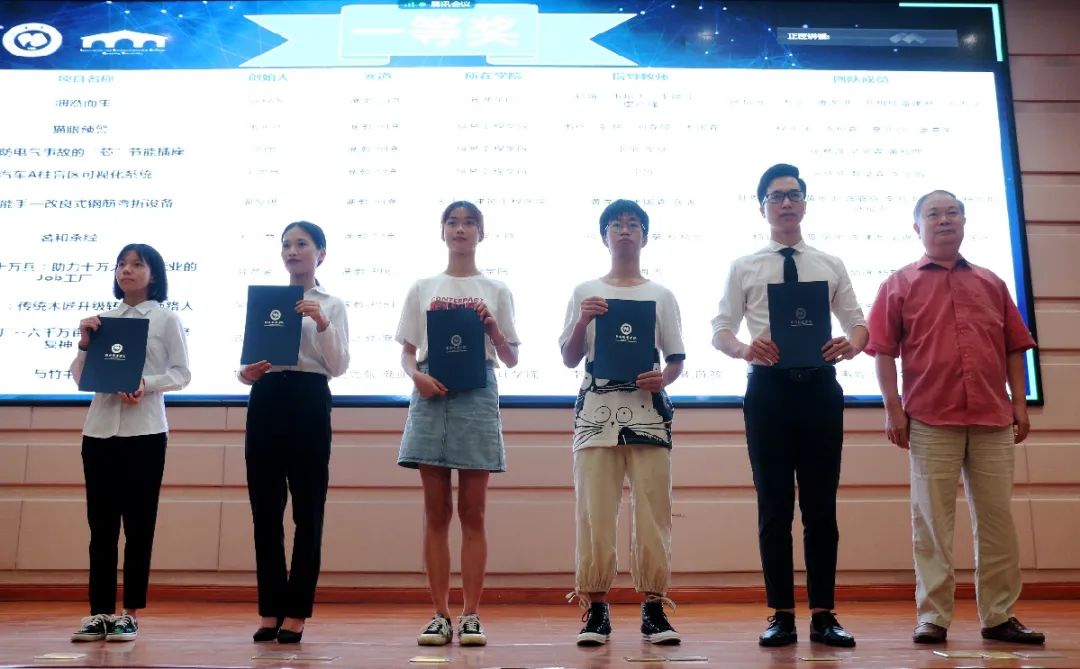 随后,在场校领导为获得等级奖的项目颁奖。赖每校长为本次汇演作总结讲话。他对本次参加汇演的优秀项目给予了高度肯定,指出此次校赛汇演亮点纷呈,例如直播项目能顺应疫情时事,在助力扶贫、促进就业中有突出表现,体现了当代大学生的责任与担当。