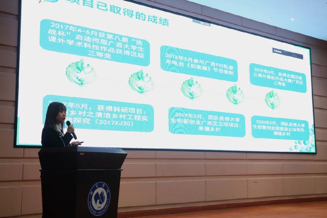 每个学院及跨学院校赛成绩最好的项目参加了此次汇演,分别是:《油然而生》、《智慧BIM正向一体化-建筑信息领头羊》、《红陶红》、《御福乡村》、《猫眼预警》、《诚心速迈二手车》、《与竹书》、《九莲望乡》和《十万大山十万兵:助力十万大学生就业的Job工厂》9个项目。专家评委们根据各项目路演汇报的情况,指出了每个项目的优势及不足,针对时代性、创新性、商业性、可持续性、带动就业情况等方面做出点评及建议。