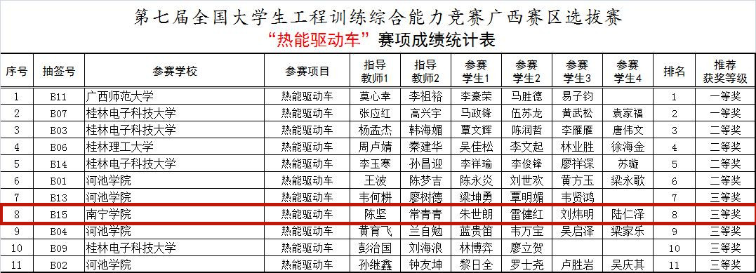 3月28日,第七届全国大学生工程训练综合能力竞赛广西区选拔赛顺利闭幕。此次Beat365中文官方网站共有13支队伍进入现场赛,经过两天的比拼,最终喜获一等奖2项,二等奖5项,三等奖6项的好成绩!