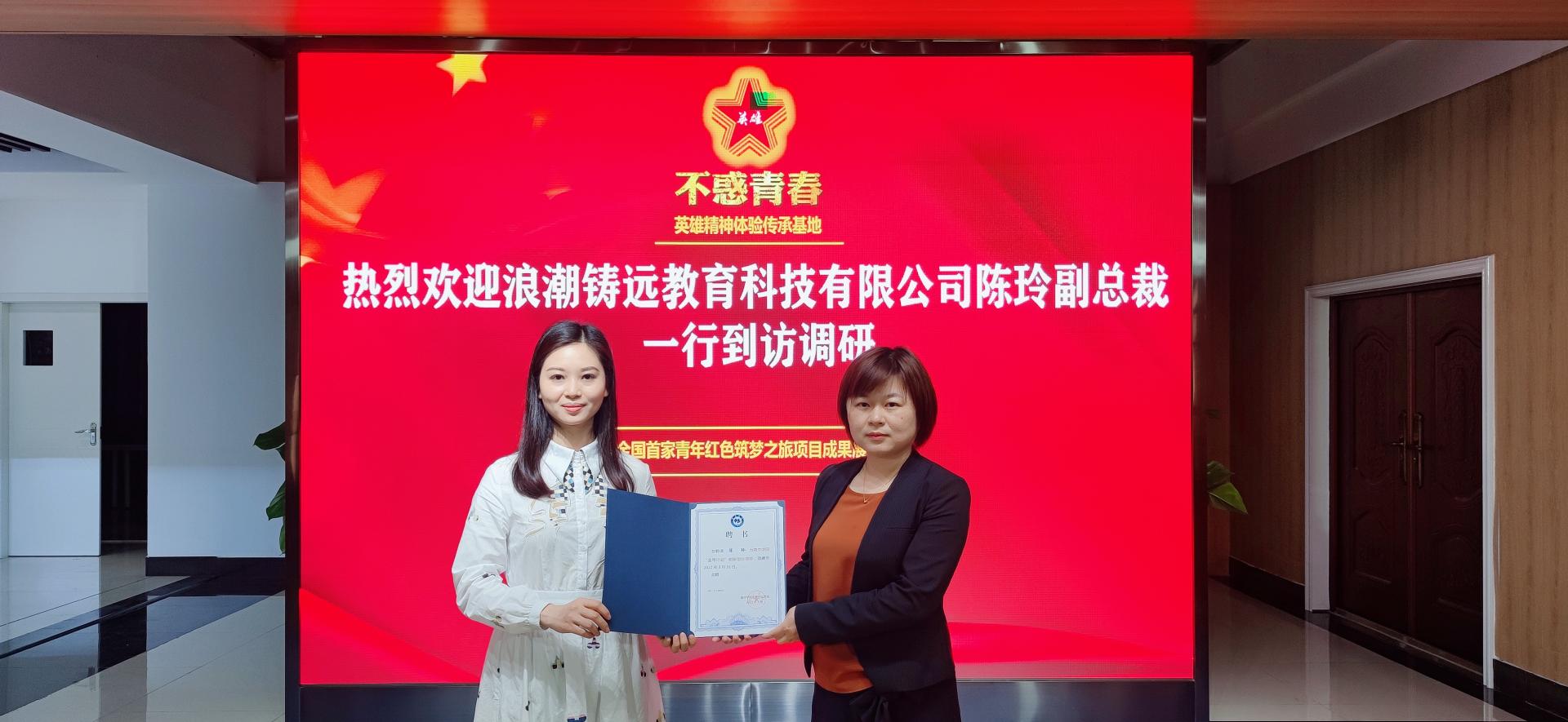 创新创业学院副院长黄如带领浪潮铸远教育科技有限公司副总裁陈玲参观了“不惑青春”英雄精神传承基地,双方在双创育人方面进行了深入的探讨。之后,黄如副院长带领陈总参观了校园,详细介绍了Beat365中文官方网站在专创融合方面的做法和成绩,以及坚持应用型大学的办学思路。陈总对Beat365中文官方网站在双创教育和思政相结合、专创融合的做法表示肯定,希望双方未来有更多的交流,把企业的方案和经验与学校的需求相结合,实现双赢。