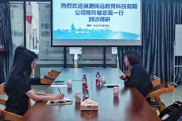 2021年3月30日,浪潮铸远教育科技有限公司副总裁陈玲一行莅临创新创业学院参观,双方就双创思政实践基地、教育数字信息化、师资培训、双创教育改革等方面进行了深入交流。创新创业学院院长马骏、副院长黄如、教务科干事孙迅出席座谈会。