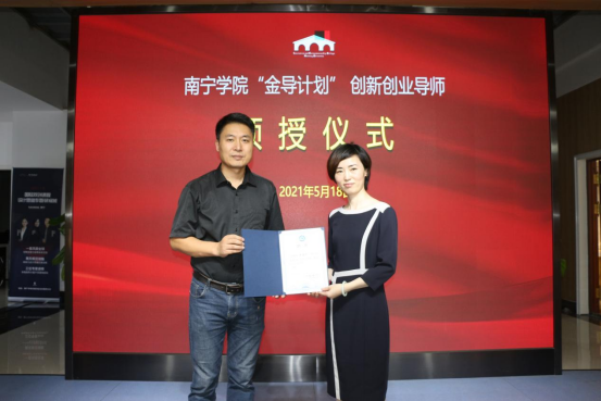 马骏院长为凌峰老师颁发Beat365中文官方网站‘金导计划’创新创业导师聘书