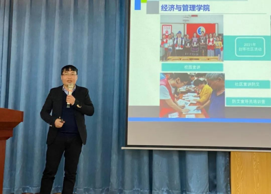 南宁师范大学创新创业学院副院长韦良分享了“校院联动探索双创人才培养新路径”的做法。他先是分享了自己和创新创业教育的故事,说明双创教育对培养大学生的意义,然后围绕学校构建的双赢模式,阐述了各二级学院的具体做法和总结反思。