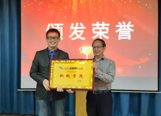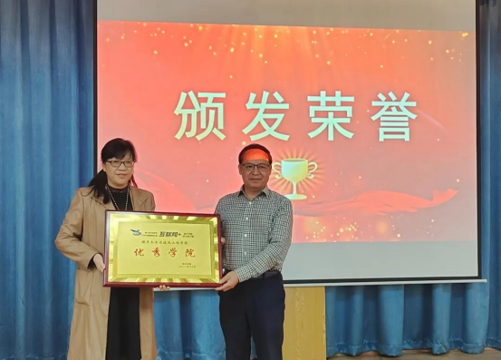 陈副校长为信工学院颁发优秀学院和积极学院奖牌
