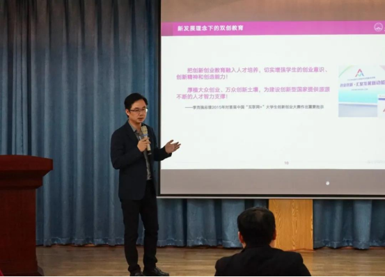 广西师范大学创新创业学院院长蒙志明就“地方高校创新创业教育改革模式探索与实践”为主题,从双创教育生态的建设思考、教学要素的融合实践和实践活动的设计实施等方面阐述在创新创业教育上的做法和实践成果。