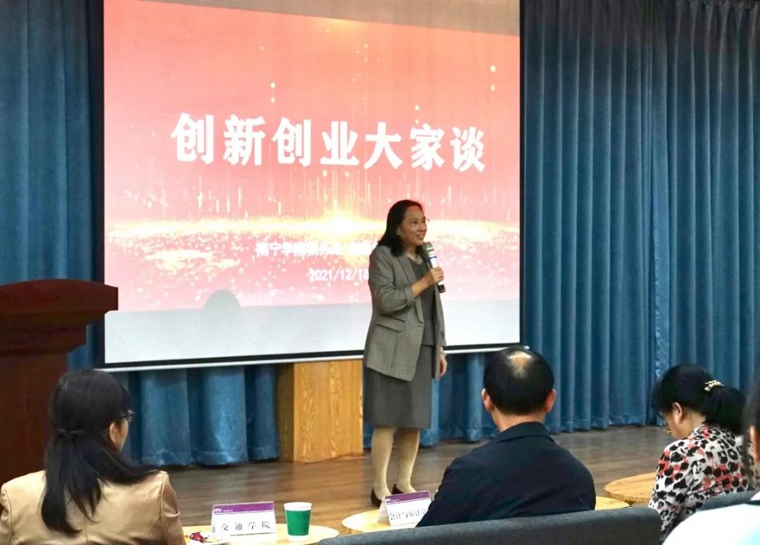 2021年12月16日晚上7:00-9:30,我校在大学生创业园二楼新商课赛训室举办了“2021创新创业大家谈”活动。该活动主要邀请我校各二级学院院长、分管双创工作的副院长、骨干创业导师共聚一堂话双创。此次活动特邀广西师范大学创新创业学院院长蒙志明和南宁师范大学创新创业学院副院长韦良,与我校领导、老师一起共同探讨创新创业教育,为我们传授先进的经验做法。