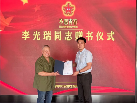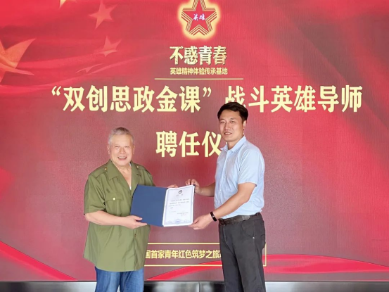 随后,马骏院长为李光瑞老兵颁发收藏证书及“双创思政金课”战斗英雄导师聘书。