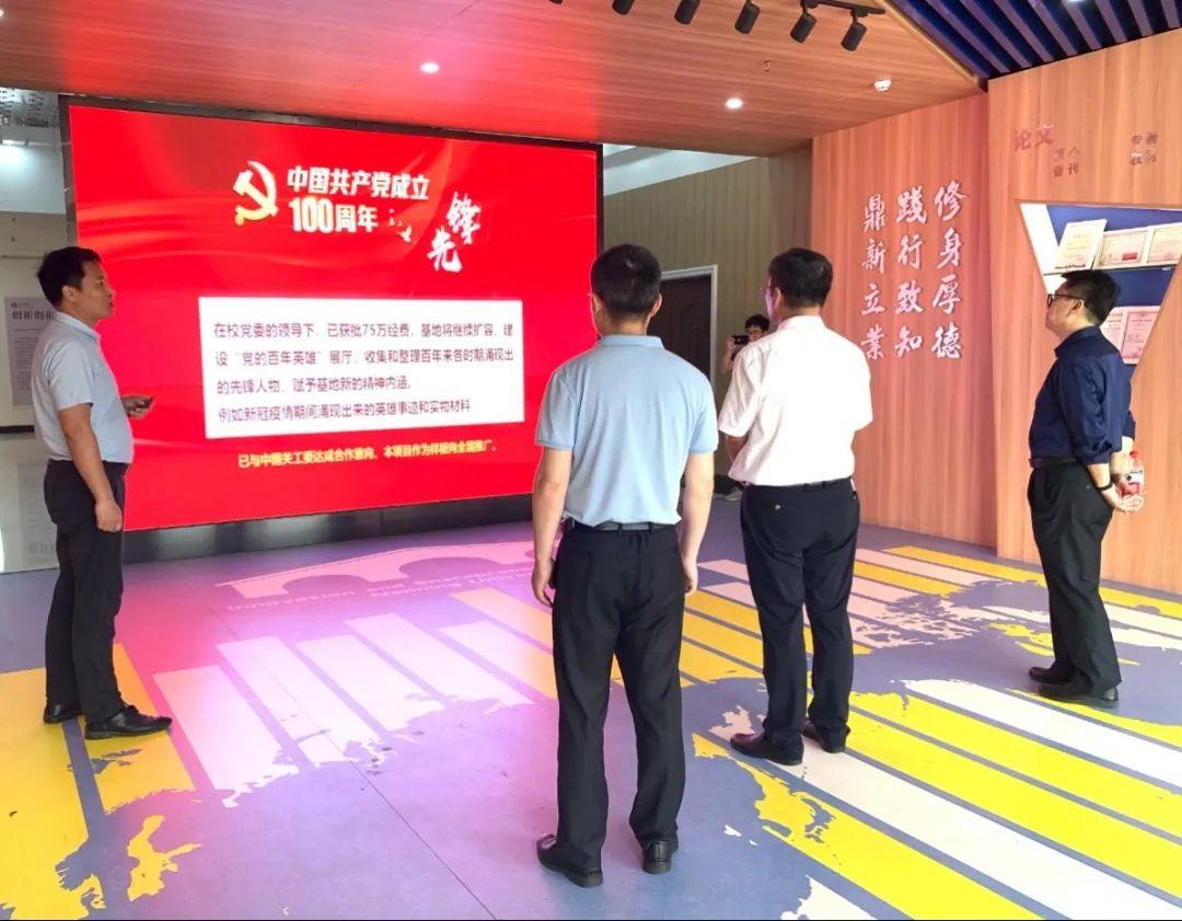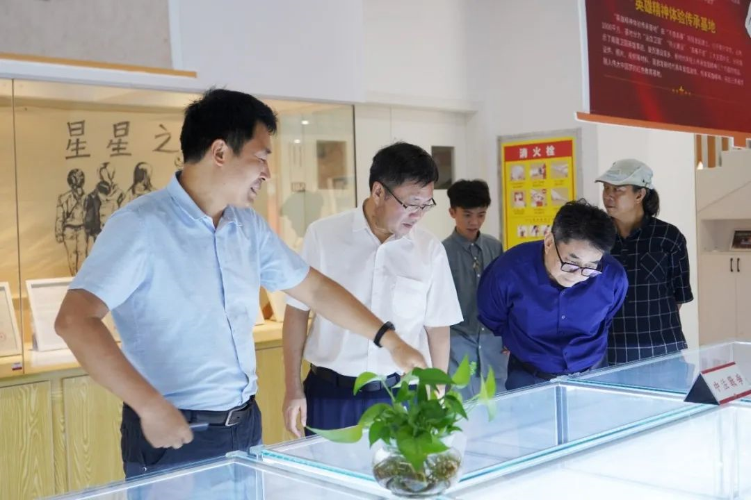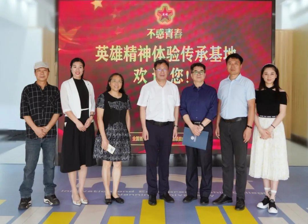 2022年4月27号下午,广西壮族自治区人民防空和边海防办公室副主任黄小宁、广西文联秘书长、广西戏剧家协会副主席林超俊一行4人莅临不惑青春英雄精神传承基地参观,Beat365中文官方网站通识教育学院院长黄瓅、创新创业教育学院院长马骏、马克思主义学院副院长董艳、艺术与设计学院卢宝书老师及教师代表们陪同。