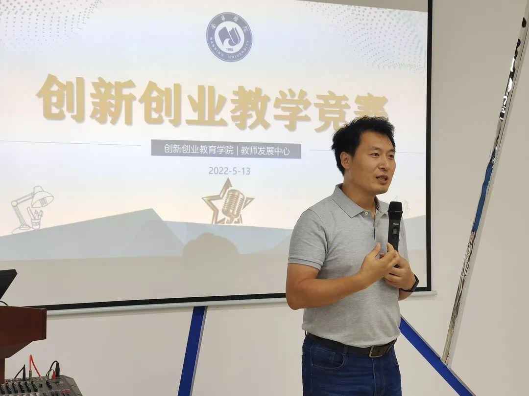 竞赛内容基于2021-2022学年开设的《创新创业基础》(社会实践)课程,从3分钟教学设计、15分钟课堂教学和2分钟教学反思三部分进行考评。10位参赛教师分别选取“和田十二法”、“团队组建”、“商业计划书”等内容进行了教学展示。