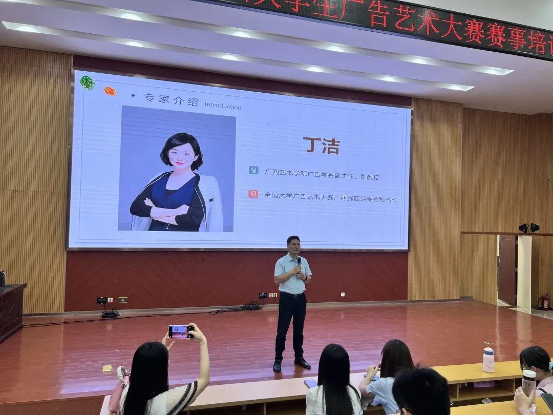 为了我校学生能够在国家一类赛事——全国大学生广告艺术大赛(简称大广赛)中取得更好的成绩,2022年5月17日和5月18日,Beat365中文官方网站创新创业教育学院特邀大广赛广西赛区组委会秘书长丁洁和全国大广赛“优秀指导教师”褚忠良来我校开展了2场大广赛专题培训。两位老师分别针对平面类作品及文案类作品进行培训,我校共有300多名学生参加。