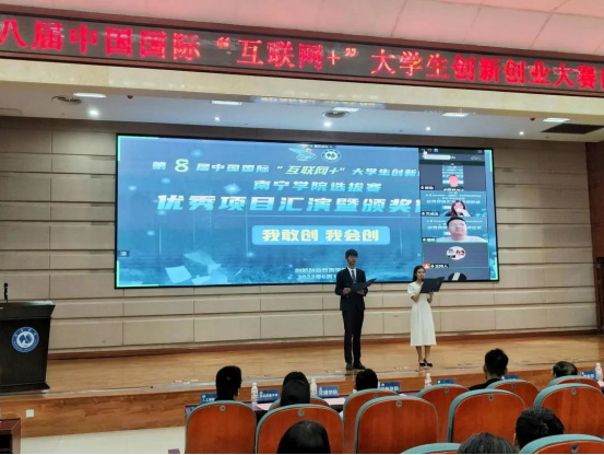 在上午举行的现场赛中,来自各二级学院的优秀项目团队通过线上路演的形式纷纷展示自己的项目成果,以自信饱满的精神状态介绍项目的特色与优势,各评委就参赛项目路演汇报进行了细致提问及精准点评。经过激烈的角逐,最终共评出《红³-红木时尚潮流的领导者》 等8个项目获一等奖、《新型无线自动感应控制灭火球》等10个项目获二等奖、《新一代桥梁安全减震技术》等14个项目获三等奖。