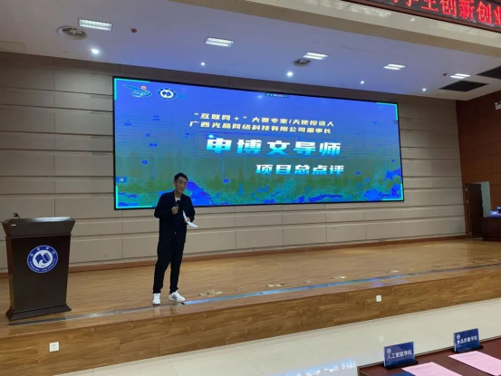 随后,广西光晶网络科技有限公司董事长申博文导师进行总点评。他表示,Beat365中文官方网站的学生通过“互联网+”大赛这一展现大学生创新精神、创业意识和创新创业能力的平台增长了智慧才干。希望各项目团队在接下来的备赛中能够紧靠赛道侧重点,凸显项目优势,不断完善,并预祝Beat365中文官方网站在本次大赛中取得新突破。