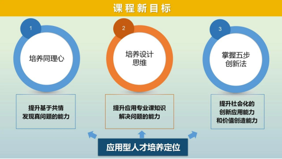 课程由创新创业教育学院副院长黄如博士领衔,院长马骏博士、韦林杉博士、罗维长老师、李梓昕博士(在读)组成课程团队共同打造。课程结合学校的应用型人才培养定位,确立了“培养同理心”、“培养设计思维”、“掌握五步创新法”三大课程目标,通过“三化”“三真”进行课程改革,提升学生基于共情发现真问题的能力、应用专业课知识解决问题的能力、社会化的创新应用能力和价值创造能力等高阶就业能力。