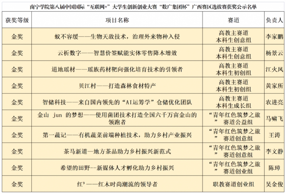 ✦ 信息来源:第八届中国国际“互联网+”大学生创新创业大赛广西赛区选拔赛组织委员会