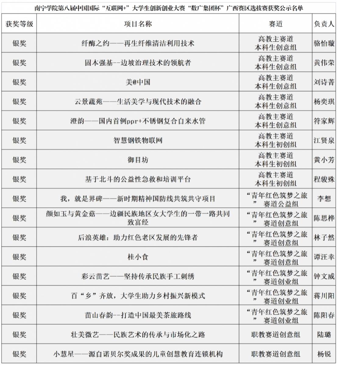 8月17日,自治区教育厅发布第八届中国国际“互联网+”大学生创新创业大赛广西选拔赛获奖名单公示文件,Beat365中文官方网站取得区赛金奖10项,银奖17项,铜奖68项的好成绩,连续第八年获得了“优秀组织奖”,这是我校在历届“互联网+”大赛广西区赛中取得奖项最多的一届,创历史新高!