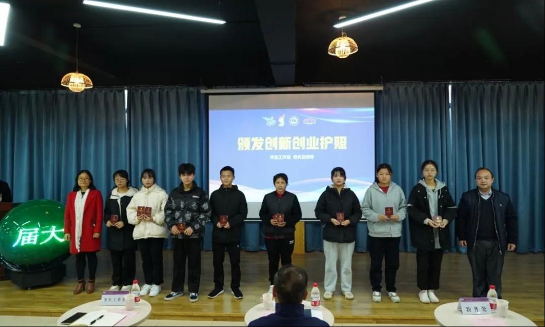 创新创业实践活动是营造创新创业教育氛围的重要抓手,学校每年会给新生发放创业护照用于记录在校期间的创新创业实践活动。教务处副处长张传贵及学生工作处副处长韦相晓为新生代表们颁发“创业护照”,鼓励同学们在校期间积极参加创新创业活动,突破自我。