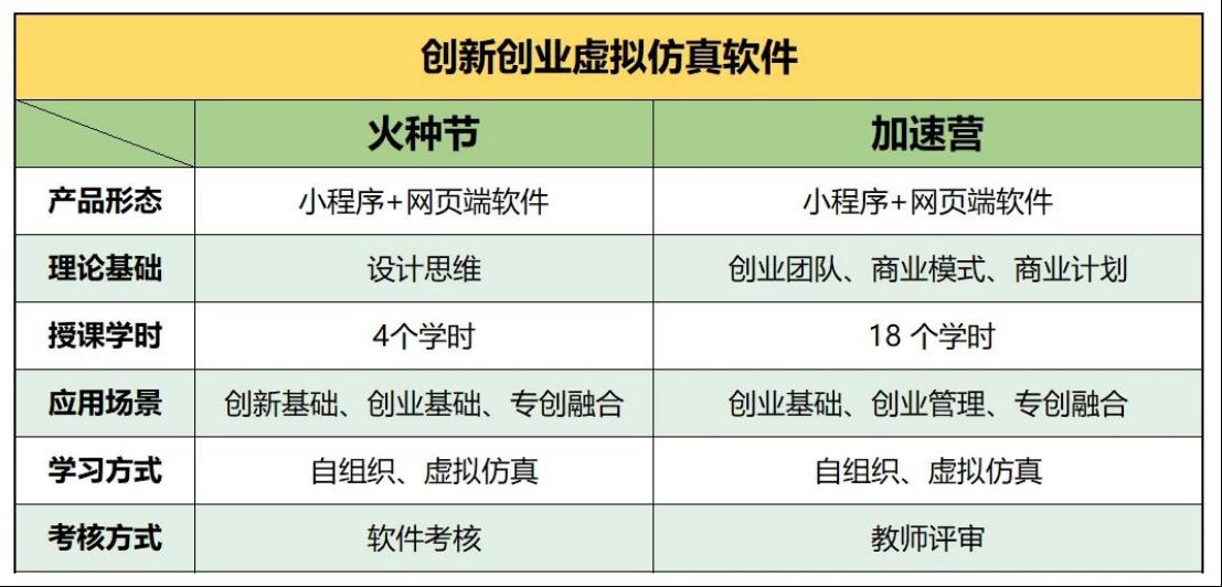 为创新创业教师实践教学提供贯穿创业全过程(产品、商业模式和商业计划)的两个创新创业虚拟仿真软件:火种节与加速营。教师作为教学的引导师,可以引导学生自组织学习,并记录学习的全过程。
