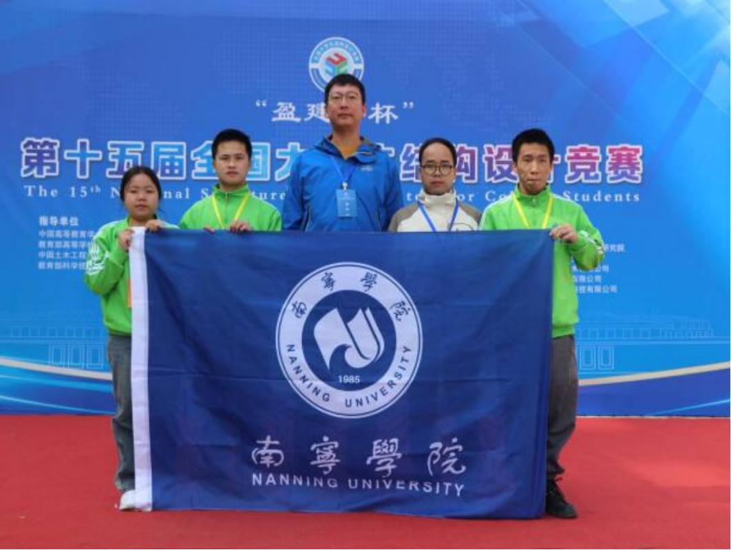 据统计,此次竞赛全国共计超过550所高校、1100支队伍参与了分区赛选拔。我校参赛选手在黄家聪老师和梁小光老师指导下,经过广西分区赛选拔,以广西唯一一所本科高校的身份参加国赛。本次大赛题目模型采用以三重木塔结构为基本单元,要求参赛者针对竖向荷载、扭转荷载及水平荷载等多种荷载工况下的空间结构进行受力分析、模型制作及加载试验。参赛选手需要在模型制作、陈述答辩、模型加载3个环节展开激烈角逐,竞争奖项。