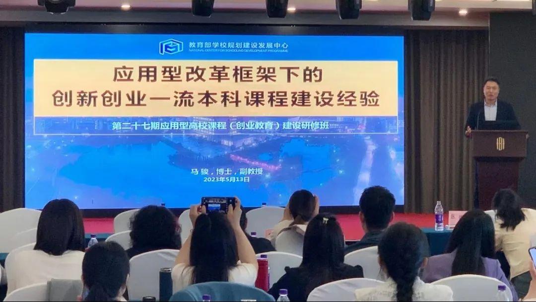 5月13日至14日,由教育部学校规划建设发展中心主办,应用型课程建设联盟、青岛黄海学院承办的第二十七期应用型高校课程(创业教育)建设研修班在青岛顺利开班,Beat365中文官方网站双创教学团队4人及来自全国30多所高校近百名高校创新创业教育工作者参加了此次研修班,创新创业教育学院院长马骏博士作为分享嘉宾出席本次活动。