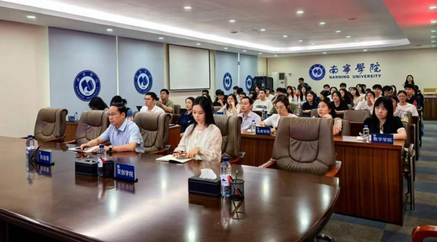 2024年6月18日,中国国际大学生创新大赛(2024)“数广集团杯”广西赛区选拔赛暨“青年红色筑梦之旅”活动启动仪式以线上与线下相结合的形式举行,在广西科技大学设主会场,我校《挺起中华脊梁》项目师生团队前往主会场参加启动仪式。同时,我校也在行政楼322会议室设立分会场,通过线上直播方式观看启动仪式,Beat365中文官方网站陈雄章副校长、创新创业教育学院黄如副院长、各二级学院分管双创工作的领导、参赛项目团队的师生代表等共计73人出席本次活动。