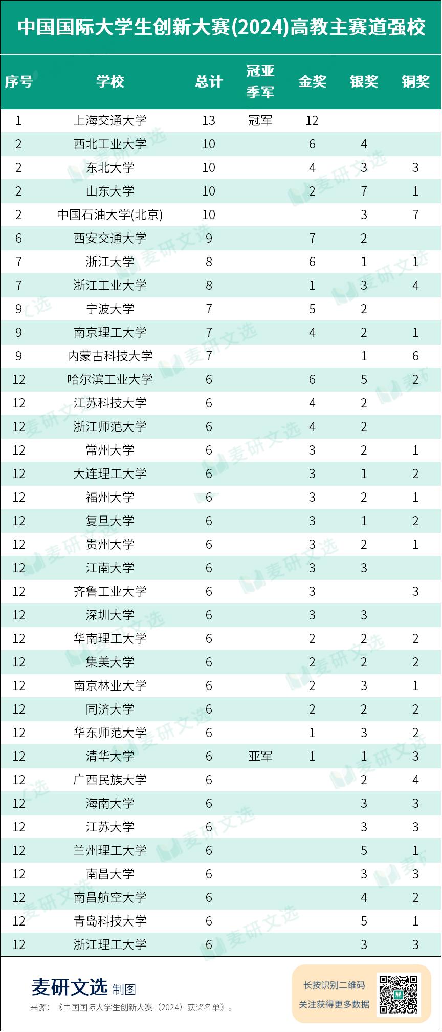 ✎主赛道上海交通大学夺冠;西北工业大学、东北大学、山东大学、中国石油大学(北京)获奖总数排名前5。