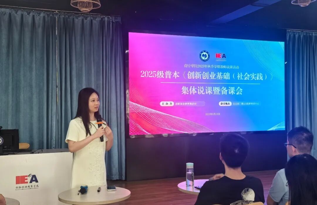 在说课展示环节,创新创业教育学院李梓昕老师系统梳理并详细阐述了《创新创业基础(社会实践)》课程的整体架构与实施细节,明确了贯穿大一至大三的四个实践模块教学目标与内容衔接机制。在成绩考核方面重点说明了“过程+成果”双维评价体系,并提醒导师们注意跨学期成绩汇总与材料归档的规范要求。此外,她还聚焦社会调研方法的理论讲解与实操示范,具体展示了前两次课的教学设计。
