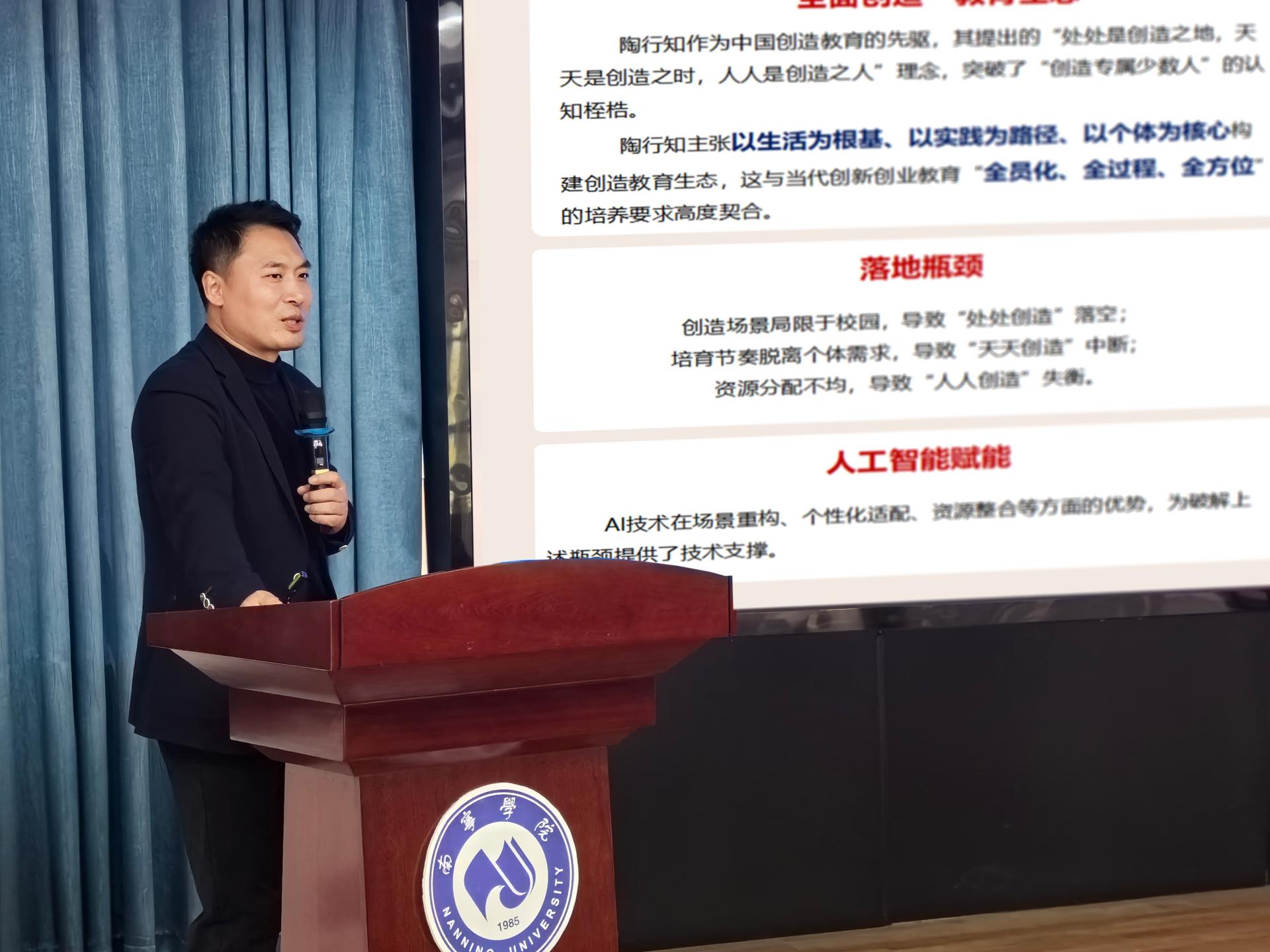 最后,创新创业教育学院院长马骏博士作《AI时代背景下的创新创业教育改革畅享》主题报告。