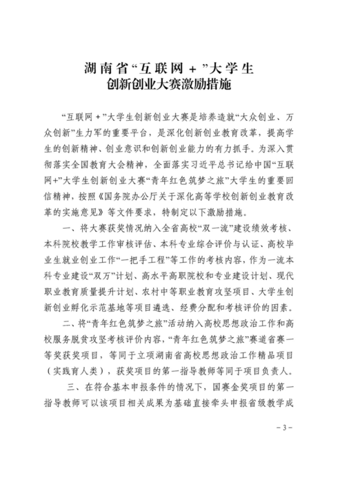 关于印发《湖南省“互联网+”大学生创新创业大赛激励措施》的通知