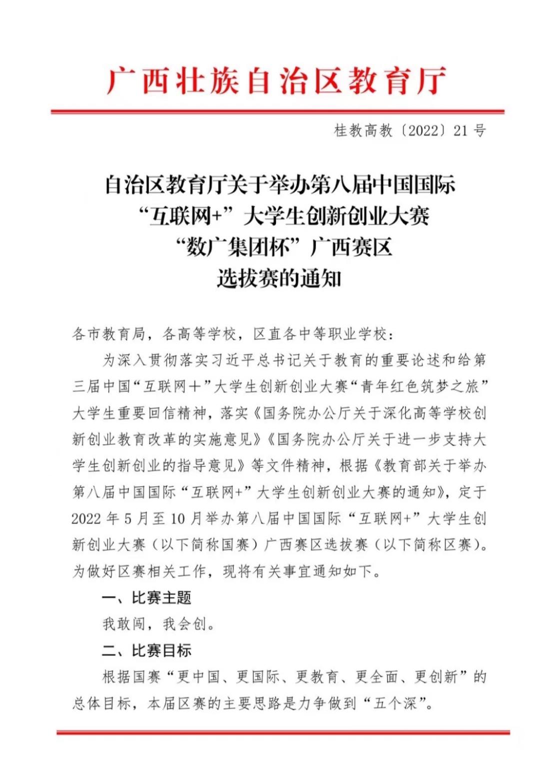 广西壮族自治区教育厅对在中国国际“互联网+”大学生创新创业大赛中获得全国金奖的高校,按照每项