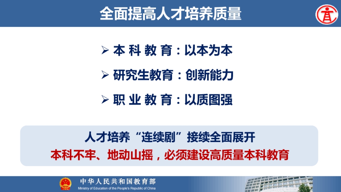 8月21日上午,教育部高等教育司吴岩司长出席同济大学中层干部综合治理能力提升专题研讨班,并作题为“服务中国式现代化建好金专、金课、金师、金教材”的主旨报告。