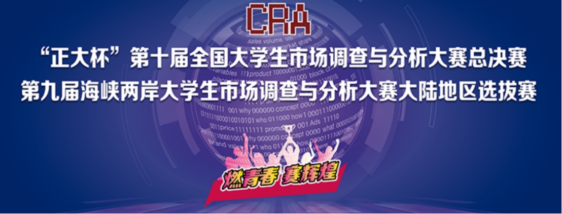 大学生市场调查与分析大赛自2010年开始举办,是面向海峡两岸高校大学生的一项公益性专业赛事。大赛旨在引导大学生创新和实践,提高大学生的组织、策划、调查实施和数据处理与分析等专业实战能力,培养学生的社会责任感、服务意识、市场敏锐度和团队协作精神。今年2月22日,中国高等教育学会主办的“2018年度全国高校学科竞赛排行榜”发布会上,“全国大学生市场调查与分析大赛(CRA)”与“中国‘互联网+’大学生创新创业大赛”、“‘挑战杯’中国大学生创业计划大赛”等大赛并列进入“2014-2018全国高校学科竞赛排行榜”,成为统计与市场调查学科领域唯一入选的全国性大赛。