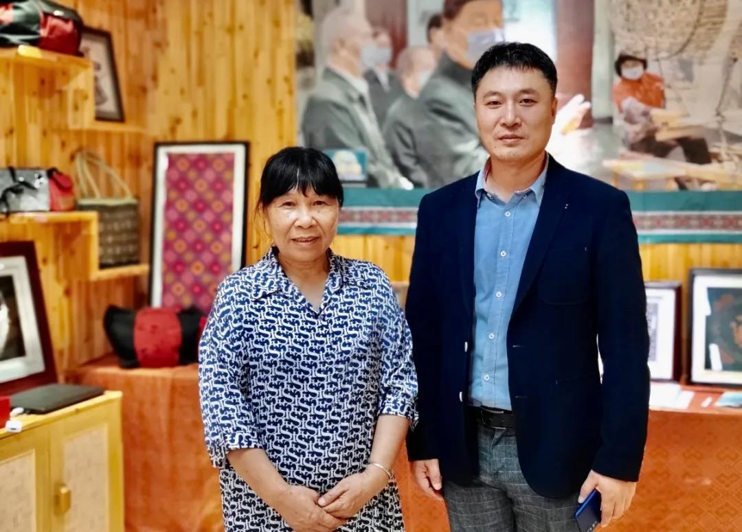 壮锦与云锦、蜀锦、宋锦并称中国四大名锦,中国壮族传统手工织锦,是中华民族文化瑰宝。最后一站是壮锦湘光纺织。无数条锦线在纺织机上悬挂,也被纺织工人无数次拨动。同学们认真聆听着中国中国工艺美术大师、织锦工艺大师、广西非物质文化代表性传承人谭湘光大师介绍普及壮锦知识,从一楼纺织机到二楼纺织工坊再到三楼壮锦展示厅,一丝一线皆为匠人之作。为打破壮锦“土气”的刻板印象,让更多的年轻人关注并爱上壮锦文化,织锦坊开发了很多时尚的壮锦元素单品,时尚的壮锦真皮包包、娇憨可爱的小牛公仔、精致小巧的耳环……这些工艺品全都融入了壮锦元素,传统精湛的技艺与现代美学的艺术设计相互碰撞出灿烂的火花。