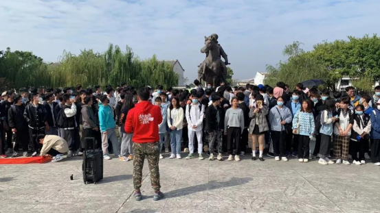 师生们在冯子材故居前合影