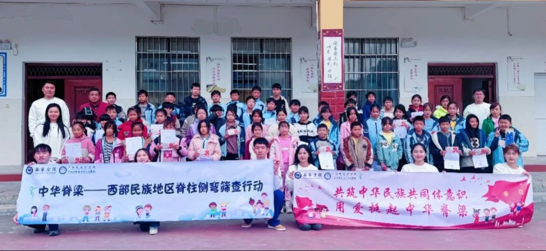 2025年1月10日,在南宁市邕宁区教育局、自治区人民医院的支持下,我校青年红色筑梦之旅公益项目——“中华脊梁”西部民族地区脊柱侧弯筛查行动公益团队走进邕宁区新江镇,分别为华联小学和那了小学学生送去迎蛇年新春健康礼包,对两所学校的学生进行了预防脊柱侧弯公益宣讲和脊柱侧弯公益筛查,受到学生的欢迎。