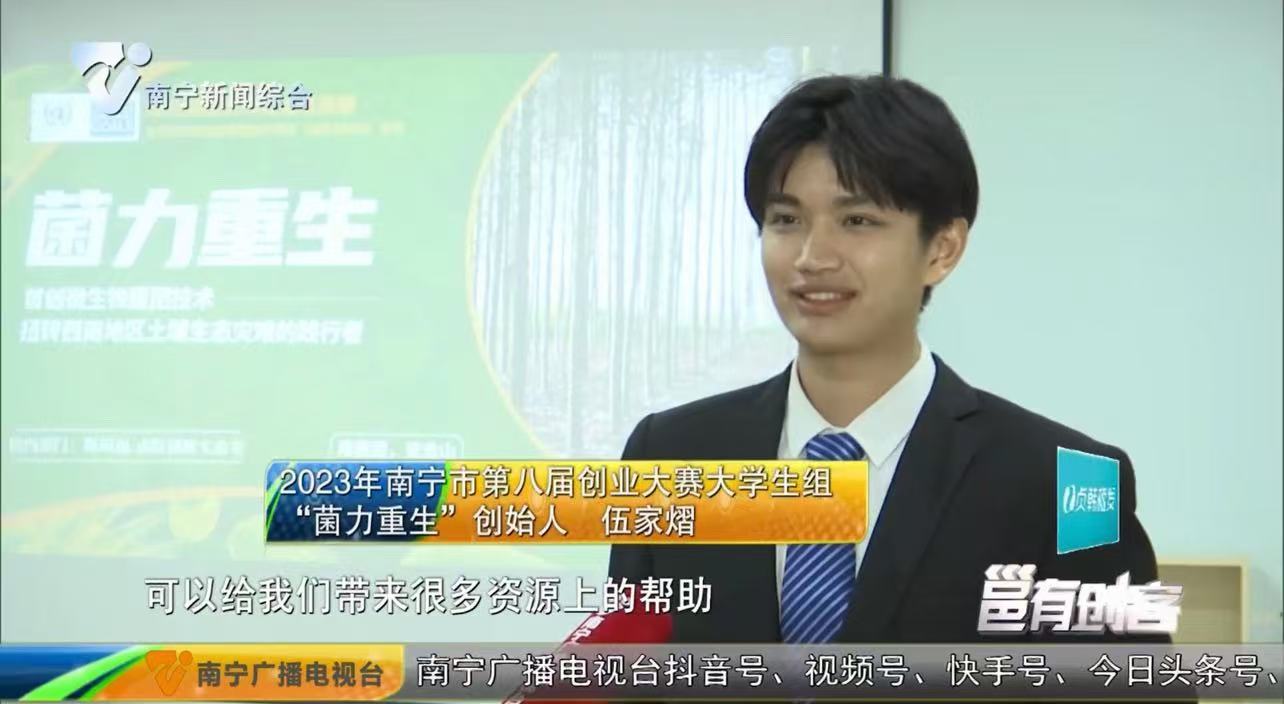 大学四年,伍家熠将双创竞赛视为检验想法、锻炼能力的绝佳平台。他与团队一路披荆斩棘,屡获佳绩。与此同时,他个人也因突出的综合表现,荣获校级“三好学生”、“优秀共青团干部”等荣誉称号,累计荣获百余项国家级和自治区级奖项荣誉,参赛事迹获得了南宁市广播电视台的专访。