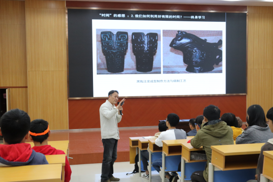 在讲座中,郭教授结合自身成长和艺术创作的经历为参加活动的师生们分享珍惜时间的重要性。他建议师生们要珍惜当下,勇于挑战、在学习过程中要勇于挑战别人不敢挑战的难题,善于创新,努力做到终身学习。郭教授在讲座中提到的“做最难的事成功的机率更大”和“做先比做好更重要”等观点得到了在场师生们的广泛认同。郭强教授的精彩分享,获得现场同学们的阵阵掌声。