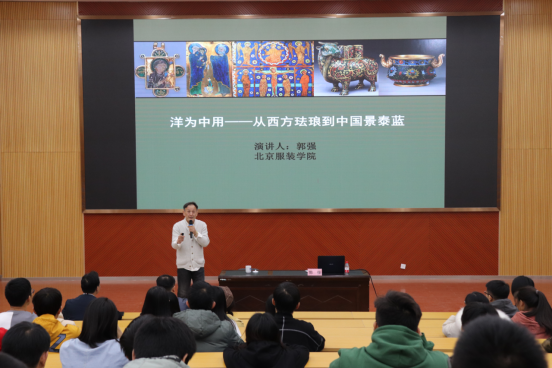 随后,郭教授围绕洋为中用——从西方珐琅到中国景泰蓝的主题,从珐琅--一个西方的舶来品、景泰蓝--珐琅的中国本土化、古丝绸之路与今一带一路、今日景泰蓝的传承和创新四个方面进行讲授。