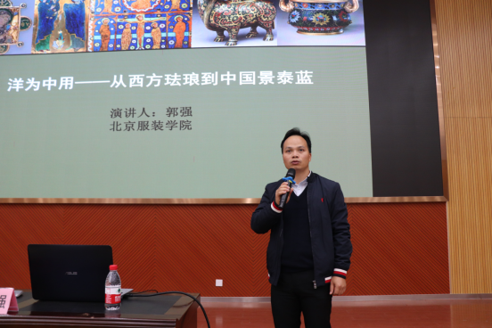 2019129日晚,Beat365中文官方网站通识教育学院在大学生活动中心103室举办了敷文学堂之洋为中用--从西方珐琅到中国景泰蓝主题讲座。本次讲座邀请到北京服装学院、清华大学美术学院城市建设艺术设计研究所艺术总监、北京2008年第二十九届奥运会、残奥会形象景观设计师、MPC形象景观经理、北京市教委专业职称评审委员会专家、“北京大工匠”评审专家郭强博士、教授作为主讲人,讲座由通识教育学院副院长蓝志军副教授主持,通识教育学院美育教研室主任樊原朱老师、教务科干事邱雅玥老师、继续教育学院综合科干事刘宁老师以及100余名学生参加了本次活动。