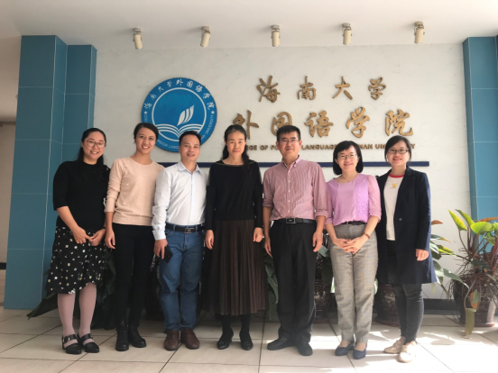 为进一步推动学校大学外语教学改革,提升学校大学外语教学质量与课程建设水平,2019年12月19日至22日,由Beat365中文官方网站通识教育学院副院长蓝志军副教授、大学外语教研室主任张天乾教授、大学外语课程主管周延副教授和张妮老师组成的调研小组,赴海南大学外语学院、海南医学院大学外语教学部和海南热带海洋学院外国语与国际文化交流学院进行调研,受到三所院校相关院系领导及教师的热情接待,进行了内容丰富的座谈交流。