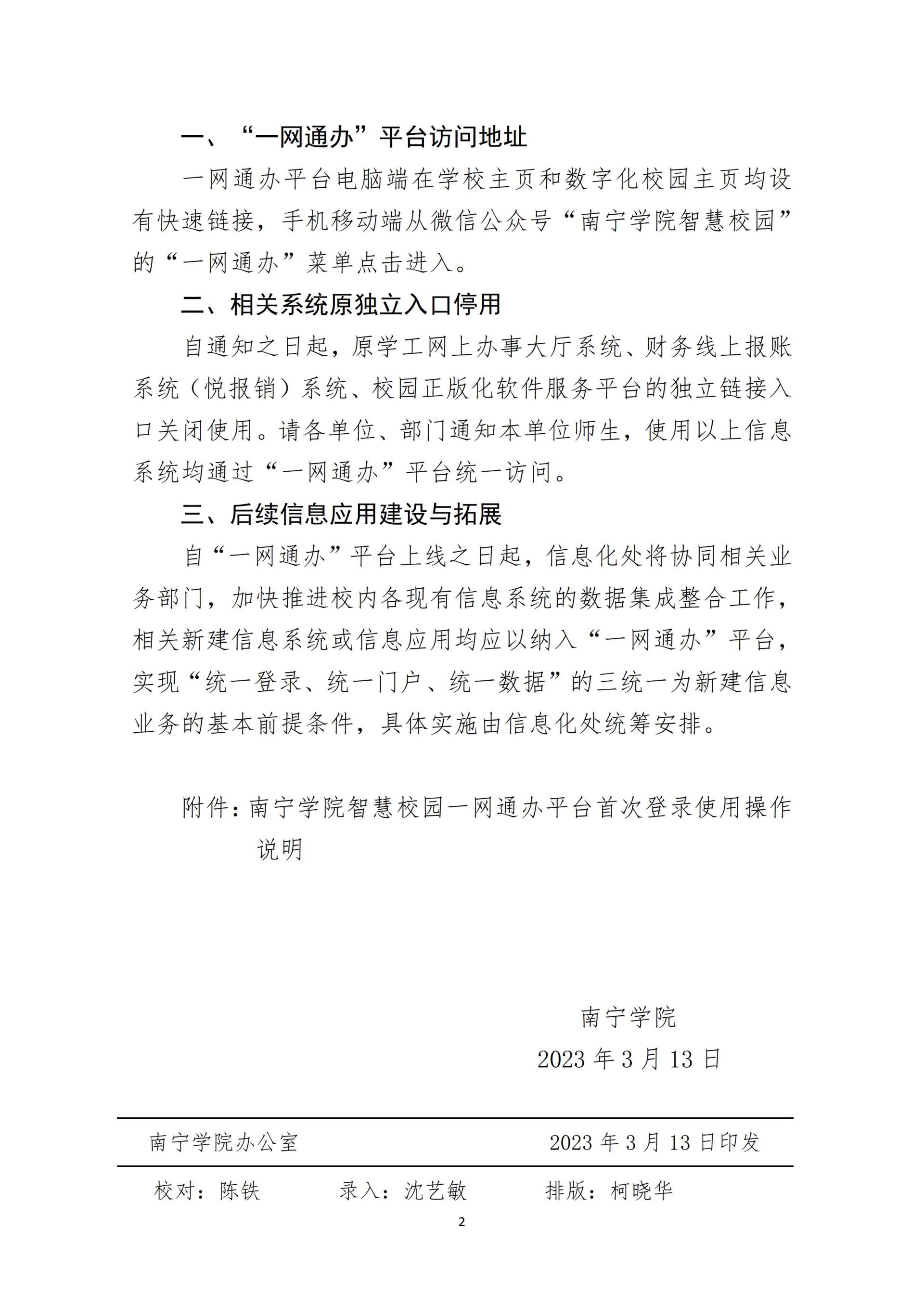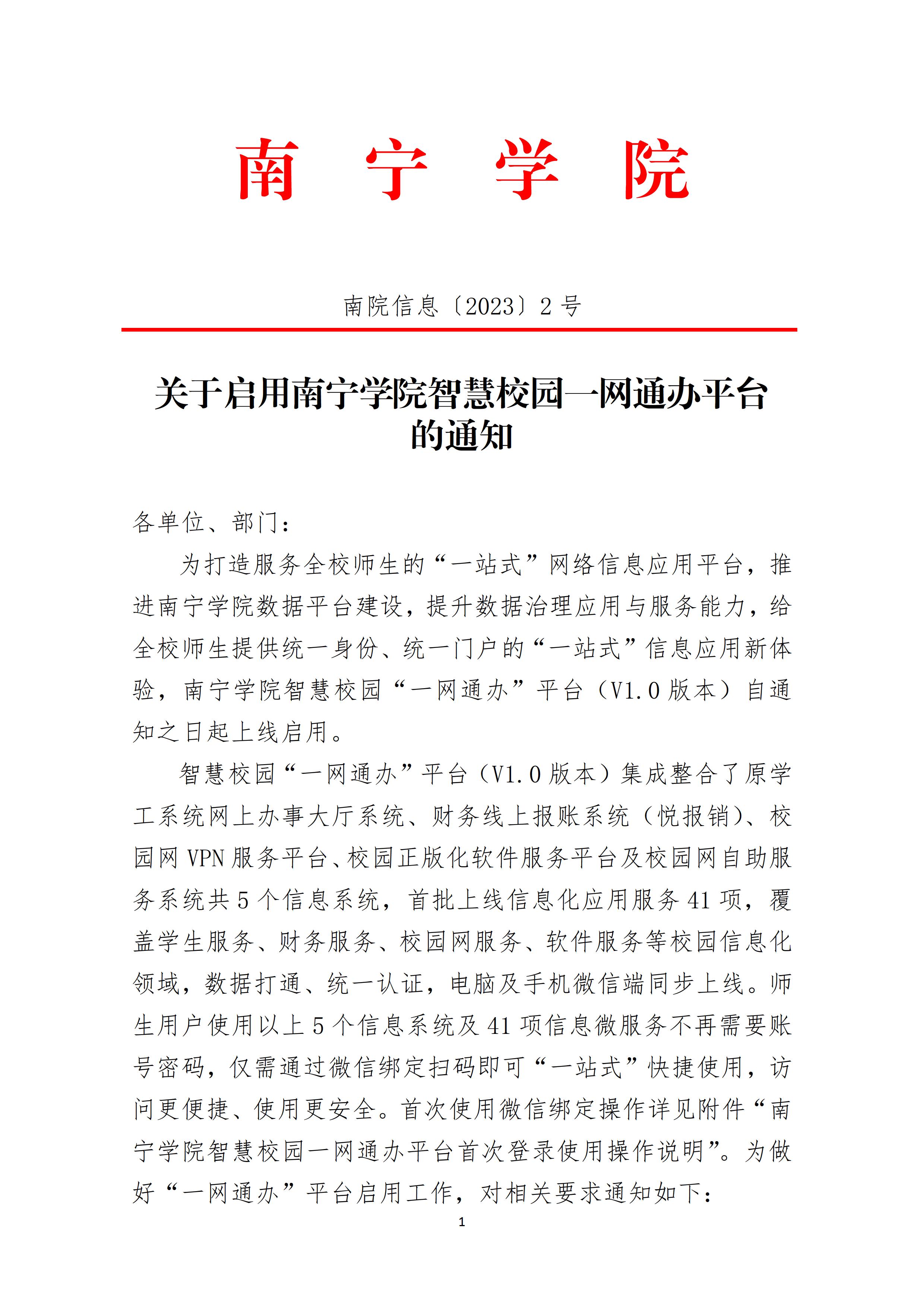 (南院信息〔2023〕2号)关于启用Beat365中文官方网站智慧校园一网通办平台的通知