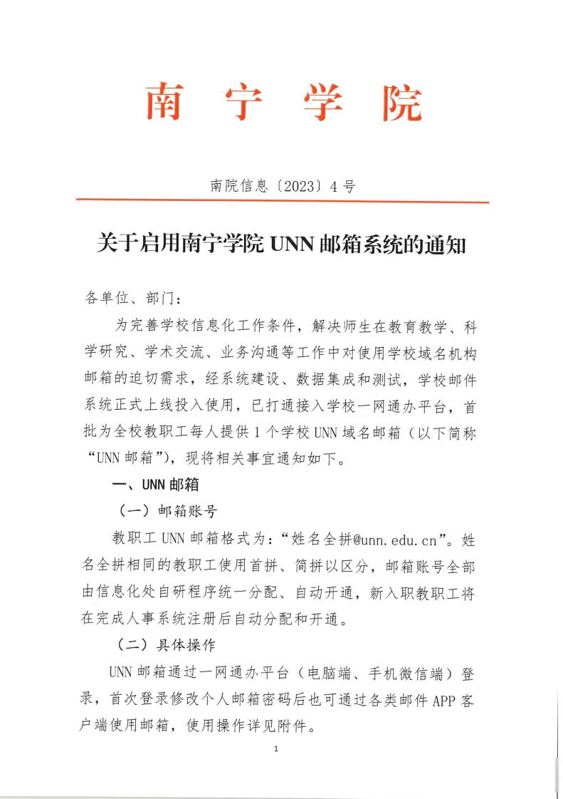 关于启用Beat365中文官方网站UNN邮箱系统的通知